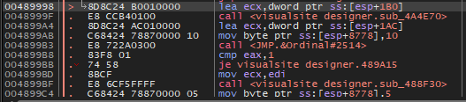 그렇다면 API 함수들을 호출하기 전 마지막 Visualsite Designer 영역에서의 주소 부분으로 가야 하는데