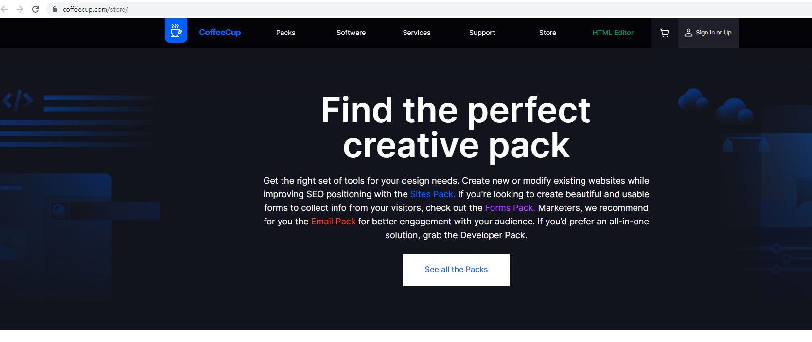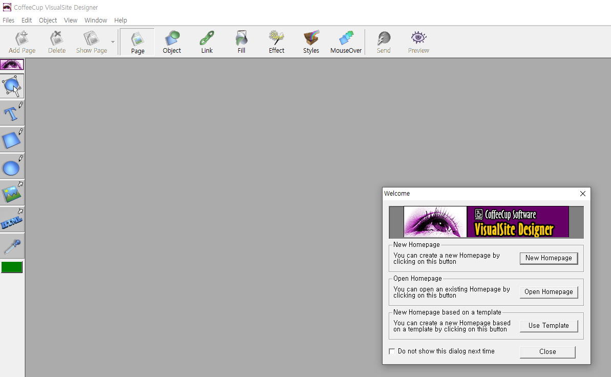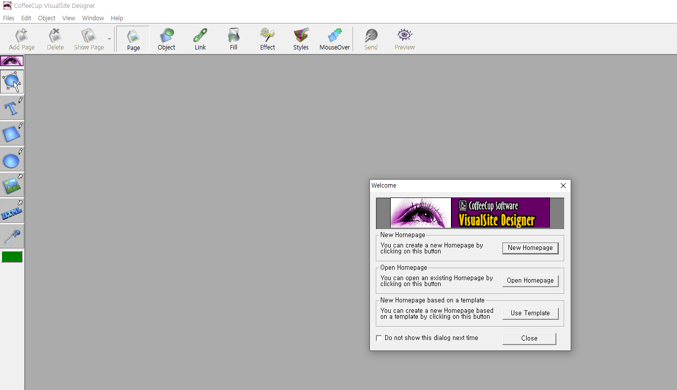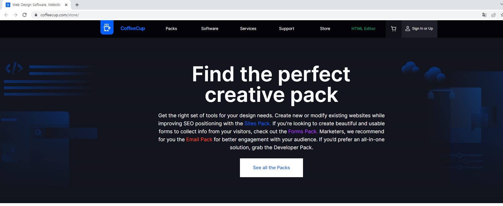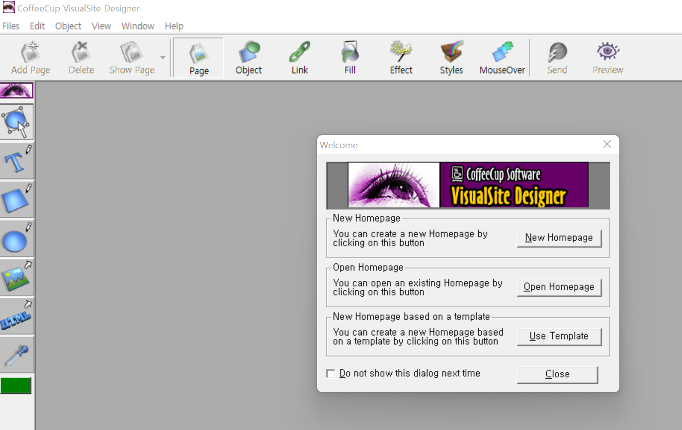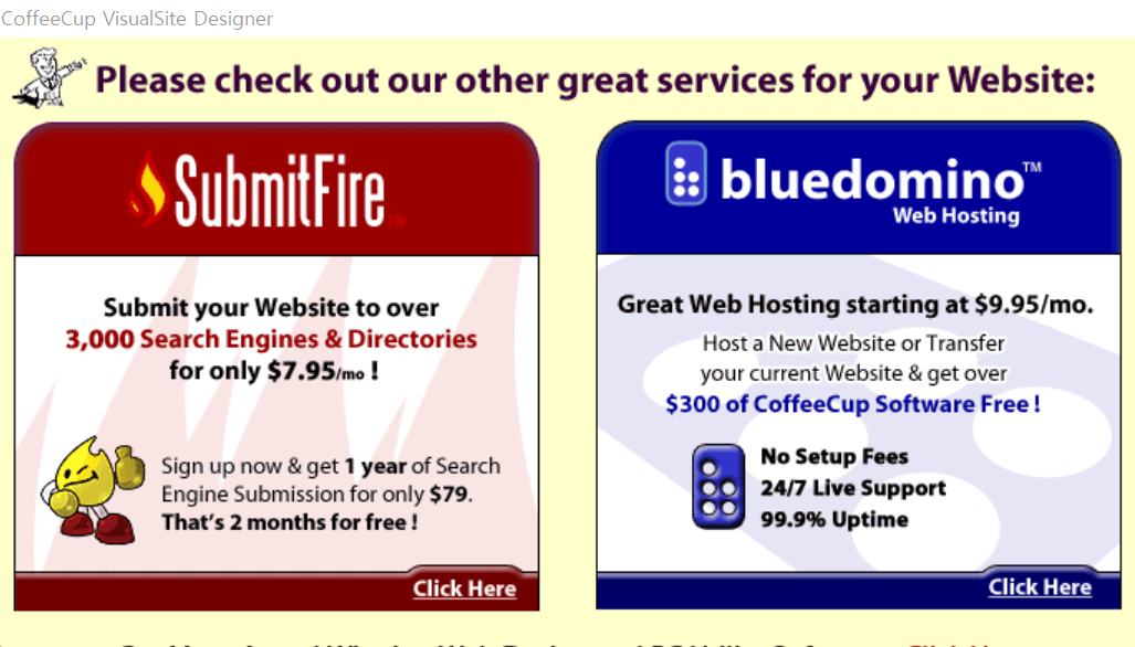 녹색 버튼 "Start Program"을 누르면 위와 같이 웹 브라우저에서 coffeecup.com 사이트로 이동한다.