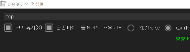 그렇다면 480C24 주소를 패치하면 되는데, 함수를 호출하는 call 명령을 패치할 때