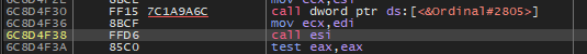 계속해서 F8 키로 진행하다보면 위와 같이 6C8D4F38 주소에서 esi에 있는 어떠한 함수를 호출함으로써 프로그램이 시작된다.