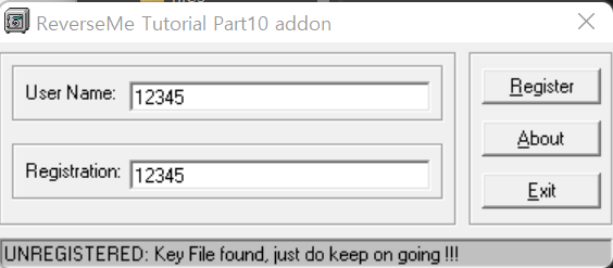 이 함수는 reginfo.key 파일을 열어서 입력한 Name 값과 Registration 값을 기재하고, REGISTERED! Why did it take so long? 문자열을 띄운다.