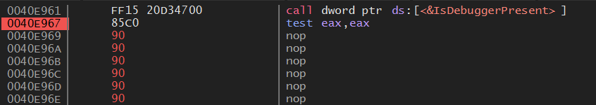 위의 루트를 따라오면 위와 같이 IsDebuggerPresent() 함수를 호출한다.