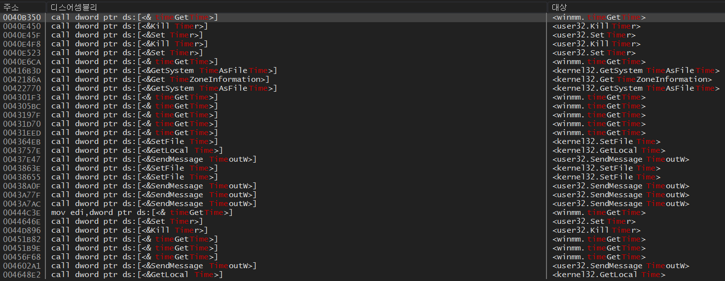 x32dbg에서 time을 검색하니 위와 같이 나오는데