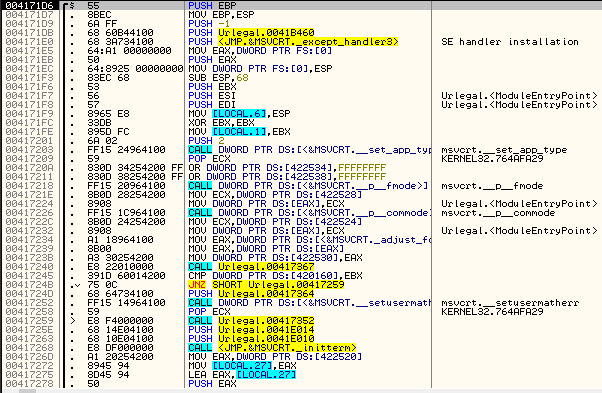 ID가 103인 대화 상자를 보면 위와 같은데 이전에 URLegal.exe 프로그램을 실행 후 종료 시 봤던 문자열들이 있다.