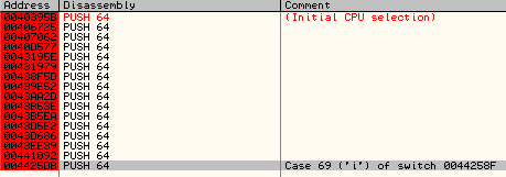 그러면 위와 같이 여러 주소에서 push 64 명령을 하는 것이 보이는데
