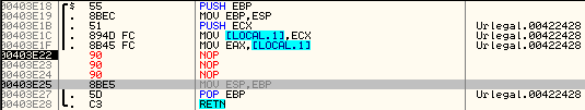 하지만 mov eax,1과 같이 명령을 수정하면 403E25 주소의 mov esp, ebp 명령 부분까지 침범하게 되므로