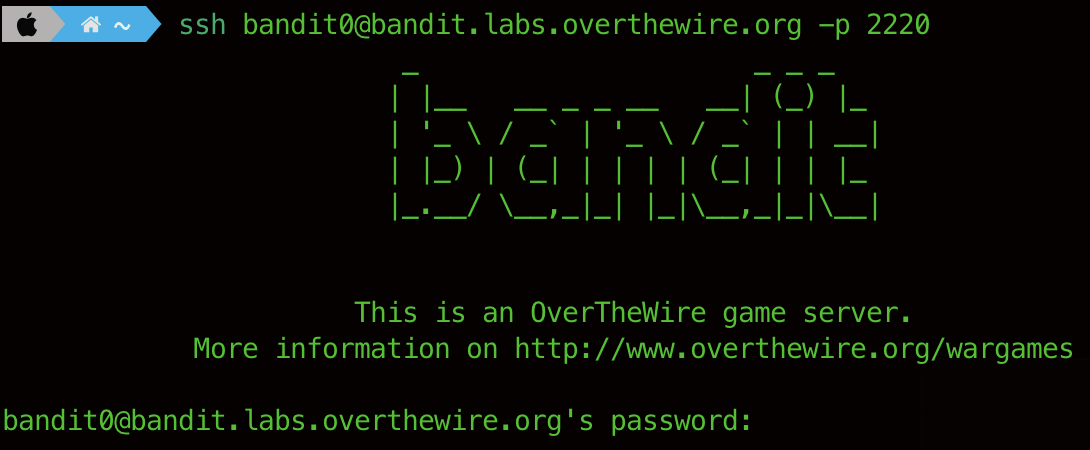 ssh bandit0@bandit.labs.overthewire.org -p 2220