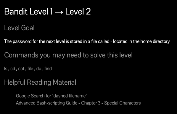 bandit1 password : NH2SXQwcBdpmTEzi3bvBHMM9H66vVXjL