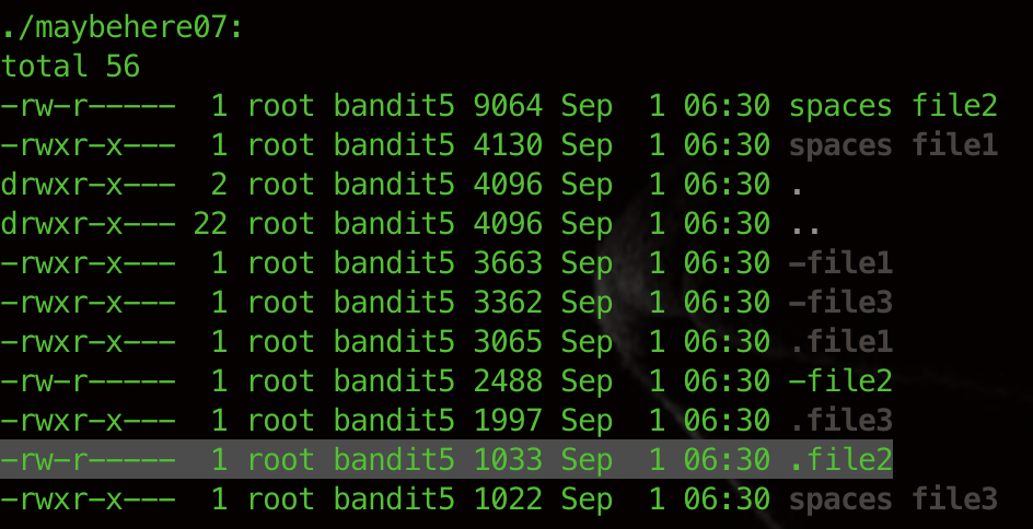 -rw-r----- 1 root bandit5 3070 Sep 1 06:30 .file2