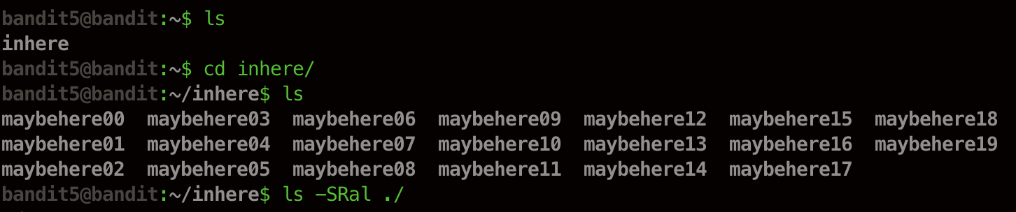 drwxr-x--- 2 root bandit5 4096 Sep 1 06:30 maybehere17