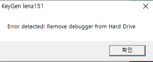빈칸에 한 글자씩 입력 후 Check 버튼을 누르면 위와 같이 Error detected! Remove debugger from Hard Drive 메세지 창이 뜬다.