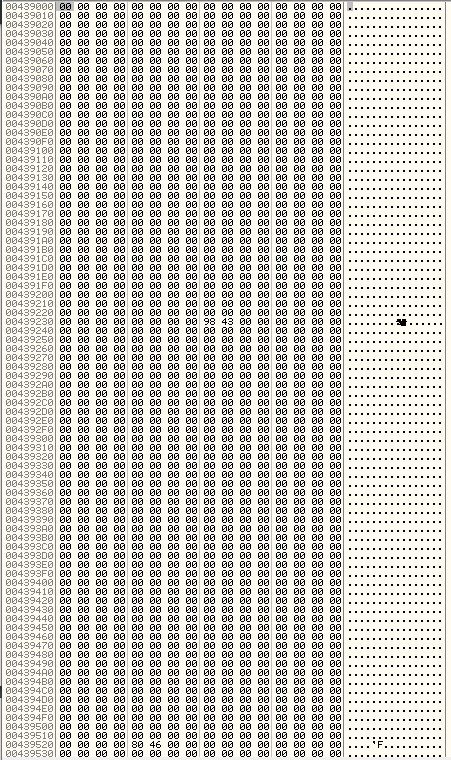 암호화 연산 후의 값이 담긴 ESI의 값을 저장할 공간을 데이터 영역에서 찾아주는데, 데이터 영역인 439000 주소로 가면 모두 00으로 채워져있다.