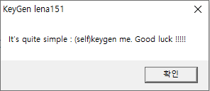 시리얼 키가 생성되는 것은 사용자가 첫 번째 텍스트 박스에 입력한 값에 따라 달라지는데, 두 번째 텍스트 박스에 입력된 값과 암호화 연산이 끝난 후의 값이 같지 않으면 에러 메세지 창이 뜬다.