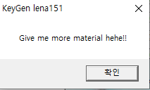 아무것도 입력하지 않은 상태에서 Check 버튼을 누르면 위와 같이 Give me more material hehe!! 메세지 창이 뜬다.