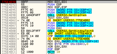 775E4B90 주소는 user32 모듈의 주소이다.
