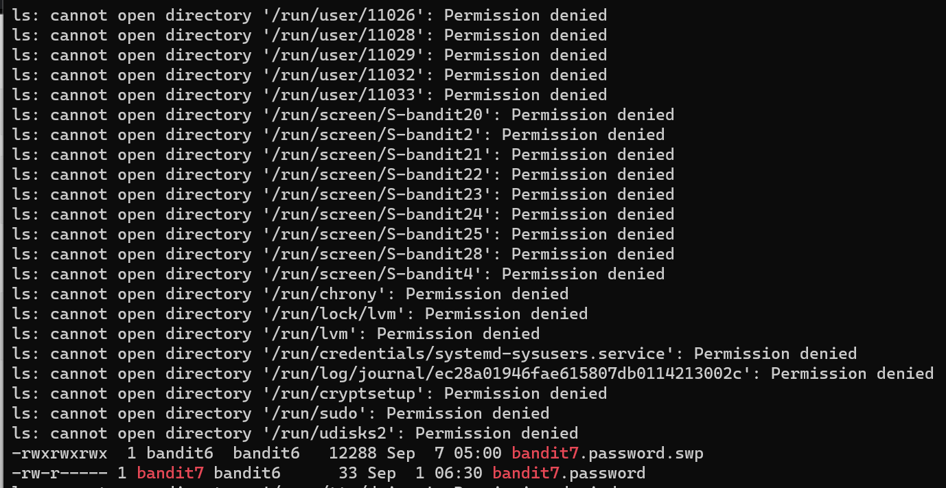 ls -RSal / | grep "bandit6" | grep "bandit7"