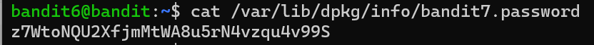 bandit6 password : P4L4vucdmLnm8I7Vl7jG1ApGSfjYKqJU