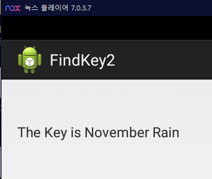 그리고 나서 02.apk 파일을 nox player에 재설치 후 앱을 실행하면 위와 같이 key 값은 November Rain이라고 나온다.