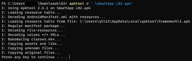먼저, apktool로 apk 파일을 디컴파일 해준 뒤