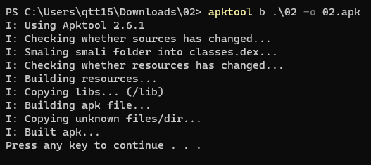 그러면 위와 같이 서명이 된 02.apk 파일이 생성되는데