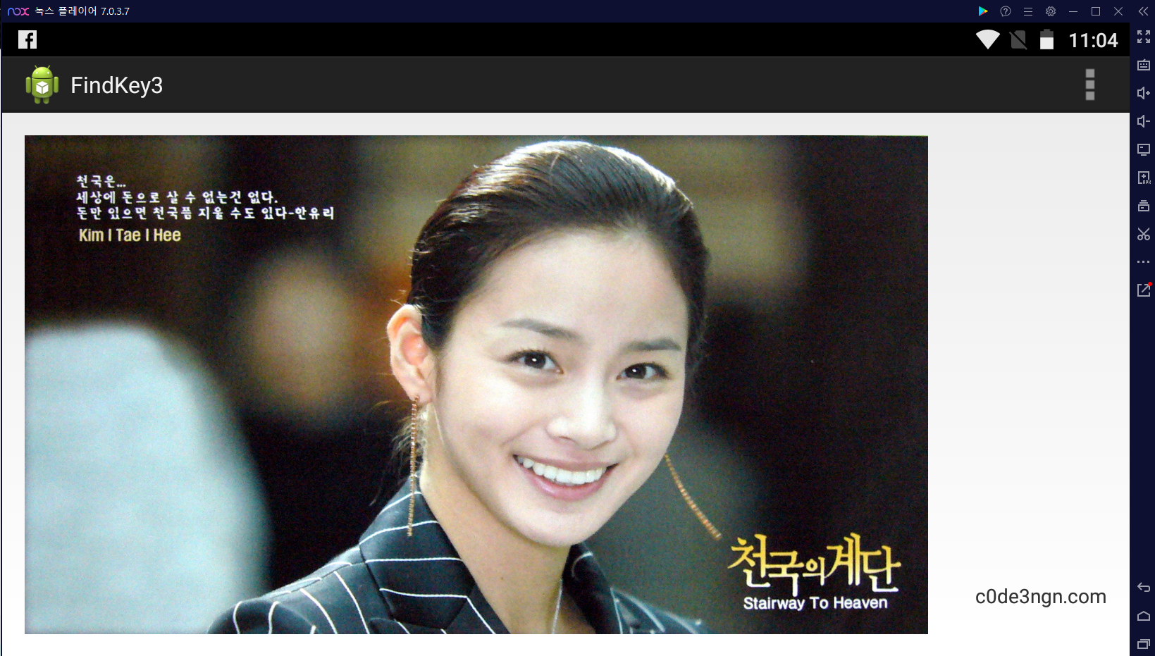 그리고 나서 3.apk를 nox player에서 실행하면 위와 같이 나오는데 김태희 사진을 클릭해봐도 어떠한 동작이 없다.