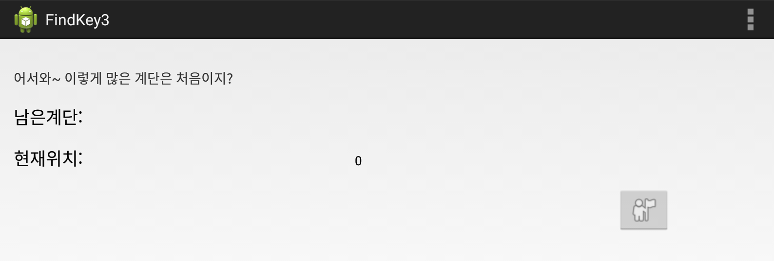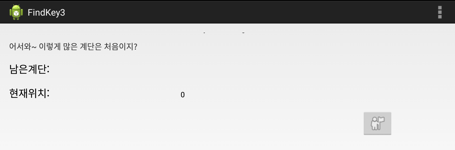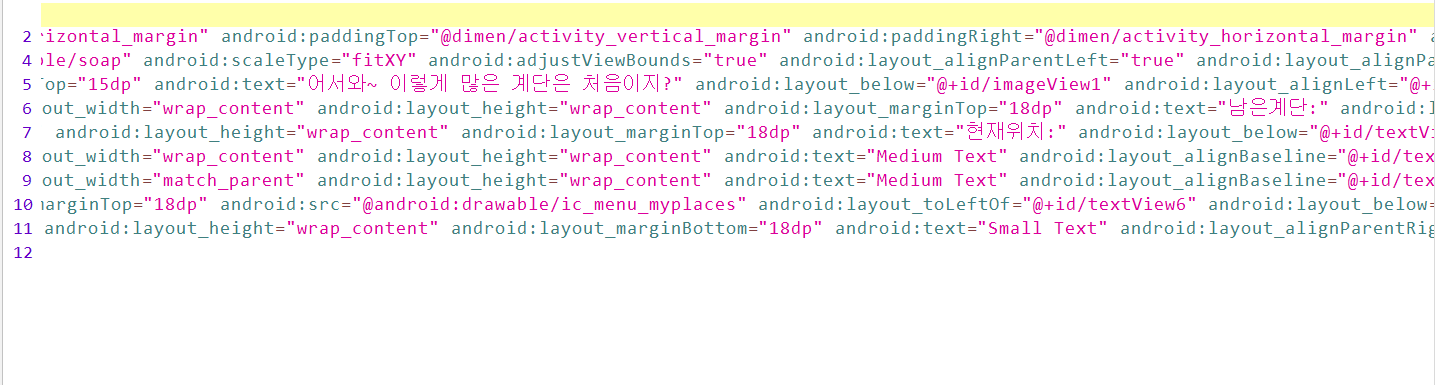 TextView 부분들에 "어서와~ 이렇게 많은 계단은 처음이지?"와 "남은 계단", "현재 위치" 문자열이 있는 것으로 보아