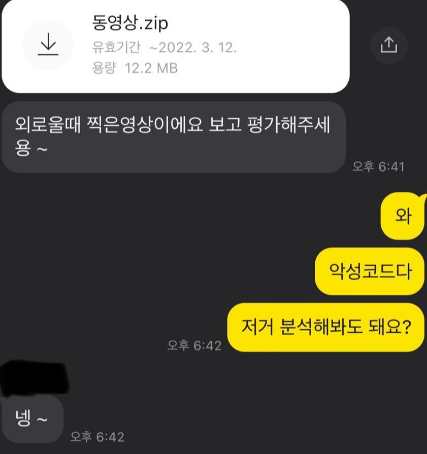그런데 갑자기 동영상.zip 파일을 보내주면서 이 영상을 봐달라고 한다.