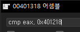증가된 eax의 값이 401218보다 작은 동안 40131D 주소에서 401314 주소로 점프하여 5A와 xor 연산을 한다.