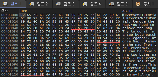 2byte를 패치해서 Nag를 없애라는 문구와 nag 창에서 봤던 문구가 보인다.