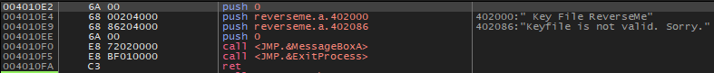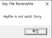 4010FB 주소의 함수를 실행하면 위와 같이 keyfile is not valid. Sorry 문자열이 뜬다.