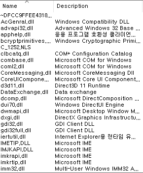 // TH32CS_SNAPMODULE 파라미터를 이용해서 지뢰찾기 프로세스에 로딩된 DLL 이름을 얻음