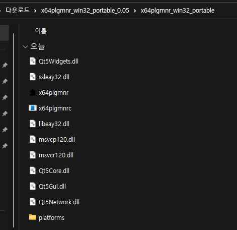 그러면 위와 같이 파일들이 있는데 이 중 x64plgmnr 프로그램을 실행한다.