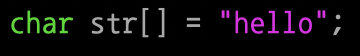 다음 구문은 char형 배열 str을 선언하면서 "hello" 문자열로 초기화한 뒤