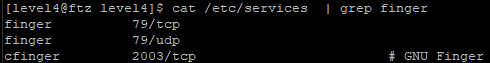 finger 서비스가 사용하는 포트는 79번 포트인 것을 확인할 수 있는데, 이는 공격할 때 79번 포트로 접속을 시도하면 된다는 것이고, 이 말은 즉 FTZ 서버에 79번 포트가 LISTEN으로 나타나야 한다는 의미이다.