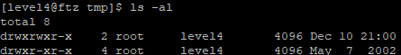 하지만 /home/level4/tmp/ 디렉토리 하위에는 어떠한 파일도 존재하지 않는다.