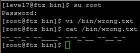 FTZ 서버를 직접 구축했을 경우 /bin/wrong.txt 파일이 없다고 한다.