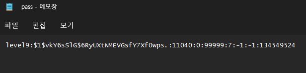 pass.txt 파일에 위에서 봤던 /etc/rc.d/found.txt 파일의 내용 중 한 줄을 가져와 복붙한다.