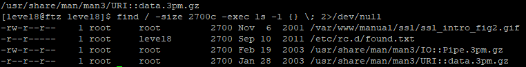 find / -size 2700c -exec ls -l {} \; 2>/dev/null
