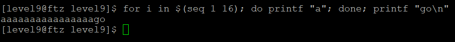 for i in $(seq 1 16); do printf "a"; done; printf "go\n"