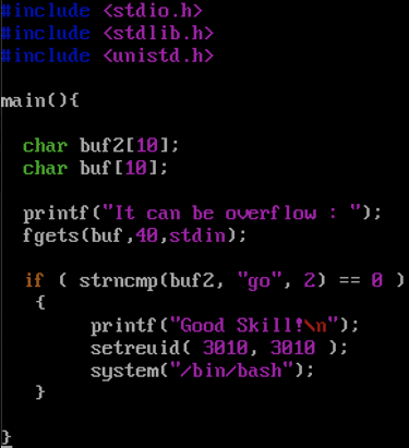 즉, 사용자 입력값은 buf에 넣었는데, buf2에 있는 값을 "go"와 비교한다.