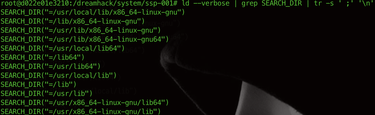 ld --verbose | grep SEARCH_DIR | tr -s ' ;' '\n'
