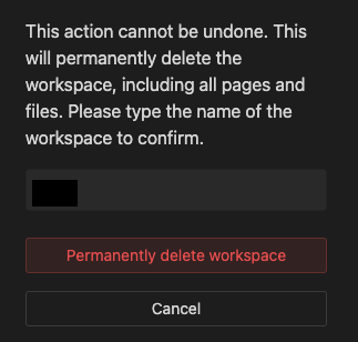 "Delete entire workspace" 버튼을 눌렀더니 워크 스페이스의 이름을 입력하라고 한다?
