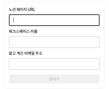 노션 페이지 URL... 워크스페이스 이름... 알고 계신 이메일 주소...