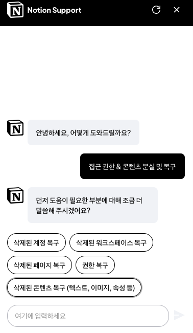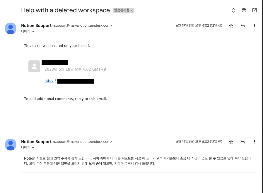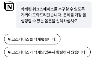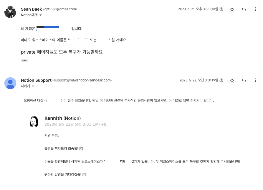 4. 지원 요청한 지 3일만에 워크스페이스와 모든 페이지들을 복구해주셨다.