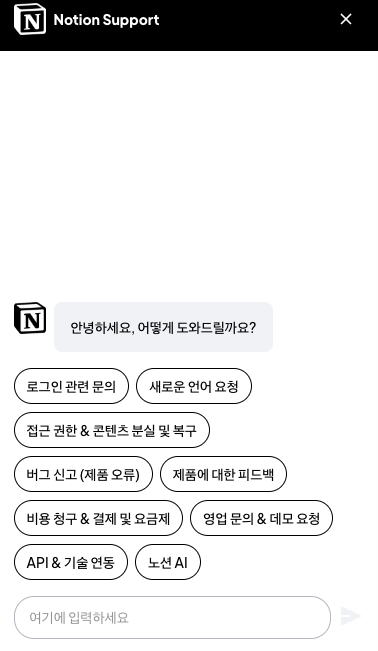 2. 노션에 있는 지원 버튼을 이용해 지원 요청