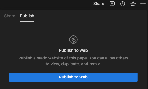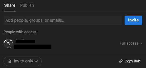 친구에게 페이지를 공유하기 위해 share - Publish를 선택해 공유하려 했다.