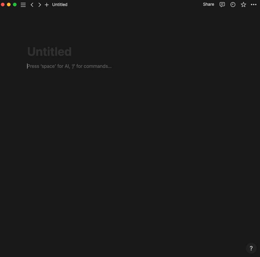 notion에서 새 페이지를 만든 후 오른쪽 아래에 보면 '?' 모양의 버튼이 있다.