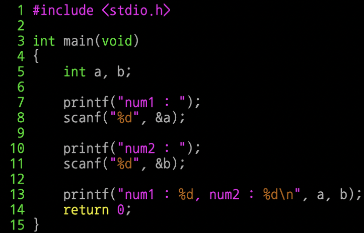 scanf() 함수는 scanf("%d", &a)와 같이 사용하고 있는데