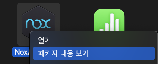 Finder -> Applications -> nox 우클릭 -> 패키지 내용 보기